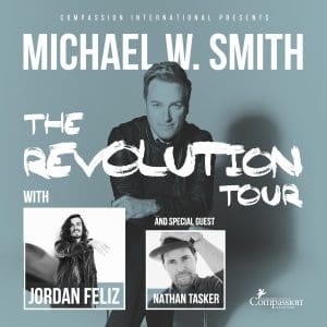 NASHVILLE, Tenn – Jan. 24, 2017 — Three-time Grammy® Award winner and multi-platinum recording artist Michael W. Smith is set to launch The Revolution Tour, featuring Dove Award-winning New Artist of the Year Jordan Feliz and special guest Nathan Tasker (pop duo Love & The Outcome will appear instead of Feliz on the first two weeks of the tour). Presented by Compassion International, the spring tour is set to kick off March 30, in Omaha, NE., and will travel to approximately 20 cities across the U.S. before wrapping up on May 14, in Ashland, KY.